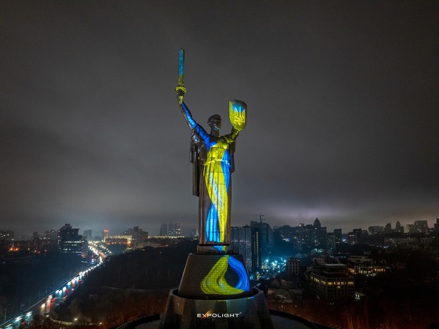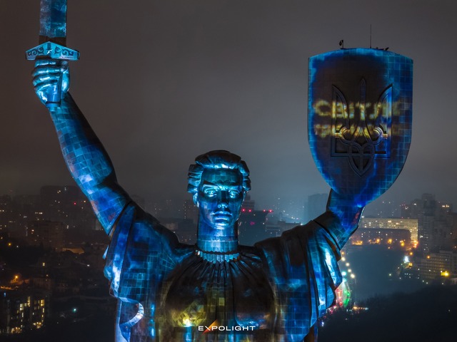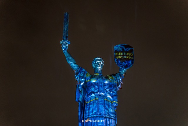 Вчора, напередодні Дня енергетика, на честь людей, які сьогодні тримають енергетичний фронт, на один вечір засяяла «Батьківщина-Мати» світлом від генератора, у форматі нашої світлової арт-роботи.