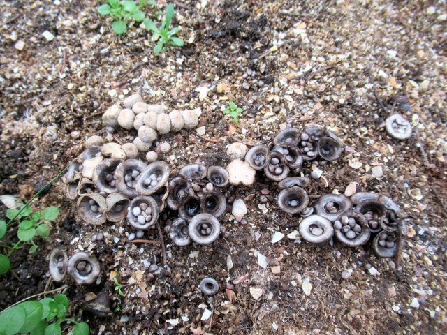 «Плодові тіла висотою 1 – 1,5 см, діаметром 0,6 – 1,2 см, спочатку яйцевидної форми, пізніше обернено-дзвониковидної або обернено-конусовидної форми, з відігнутим краєм, всередині плодових тіл містяться перидіоли.