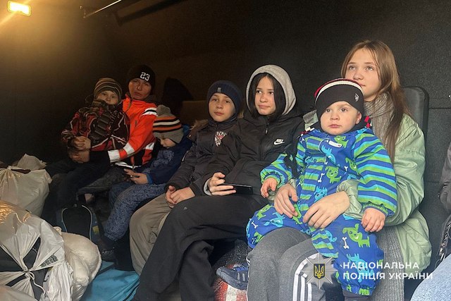 Із прифронтового Нікополя евакуювали 40-річну маму Ольгу та її семеро дітей віком від 2-х до 16 років.