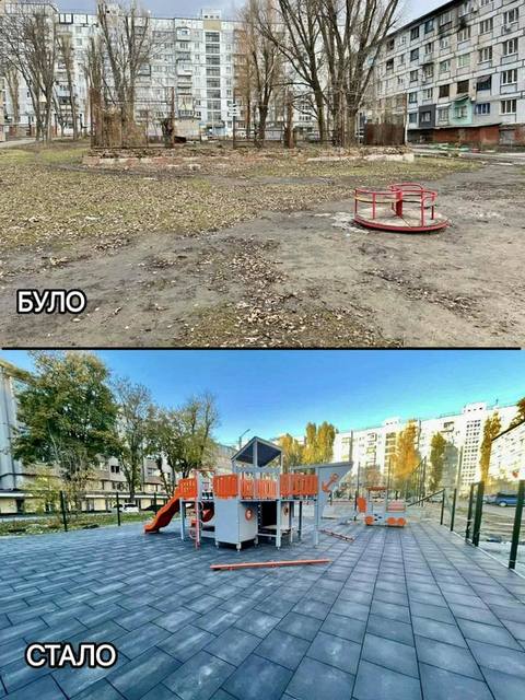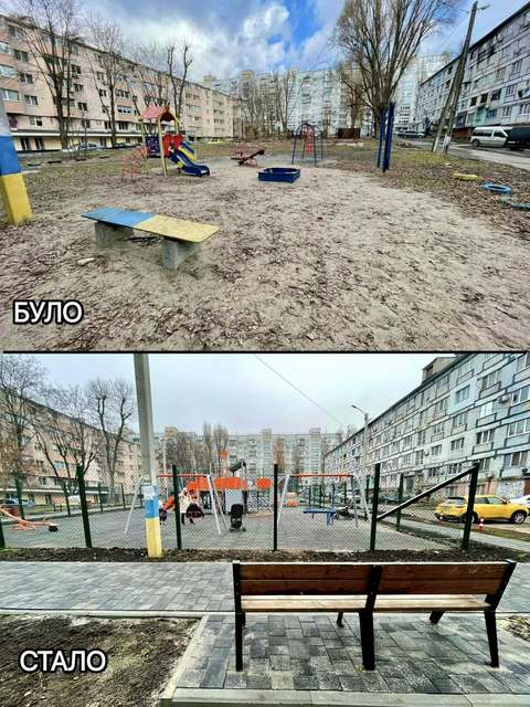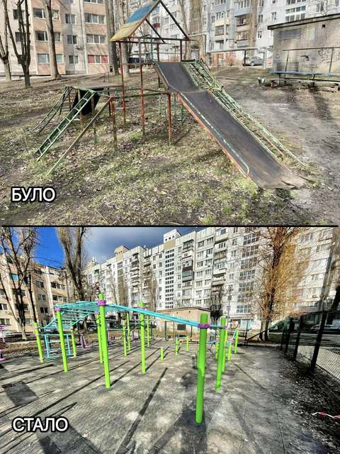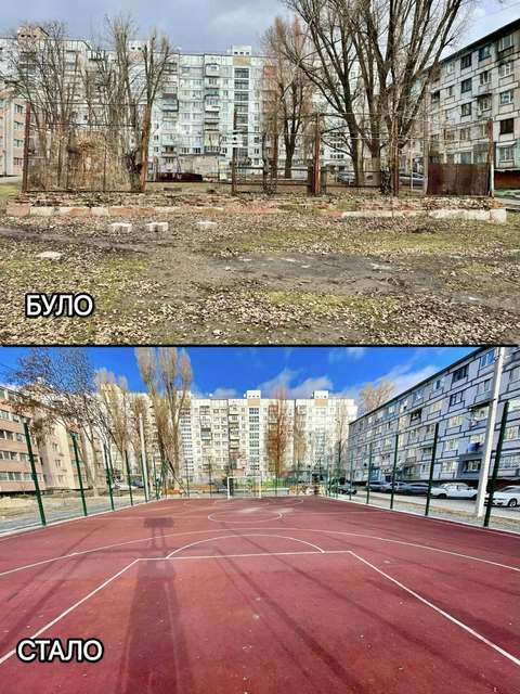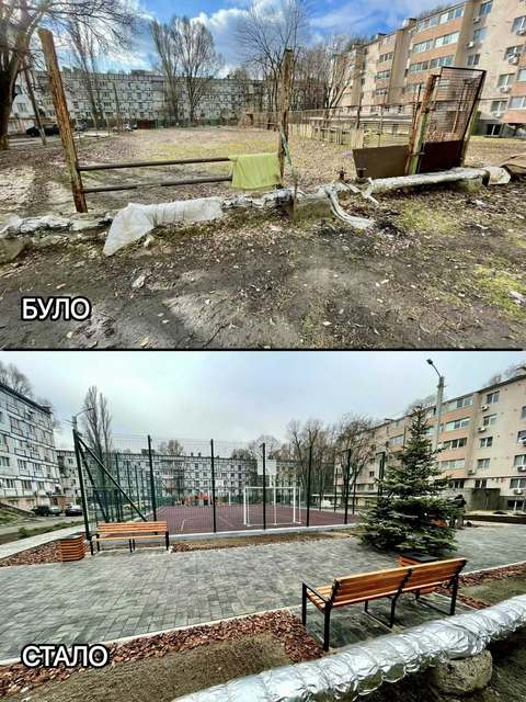 «Завершено другий етап будівництва багатофункціонального спортивно-дитячого комплексу у дворі будинків по вулицям Мирослава Скорика 6 та Козака Мамая 22, 24, 26.В минулому році було побудовано новий дитячий майданчик та мультифункціональний стадіон. В цьому році побудували спортивний майданчик з гумовим покриттям та тренажерами.
