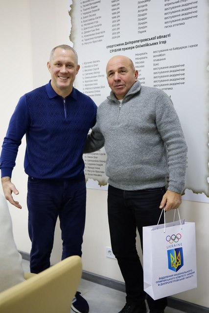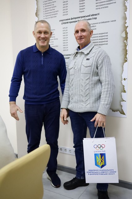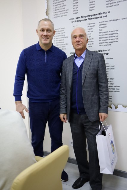 Он вручил спортсменам сувениры от Отделения НОК Украины в Днепропетровской области и предоставил финансовую помощь. А затем сделали совместное фото с легендами ветеранского спорта Днепропетровщины.