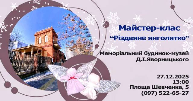27 грудня запрошуємо Вас на майстер-клас "Різдвяне Янголятко"!