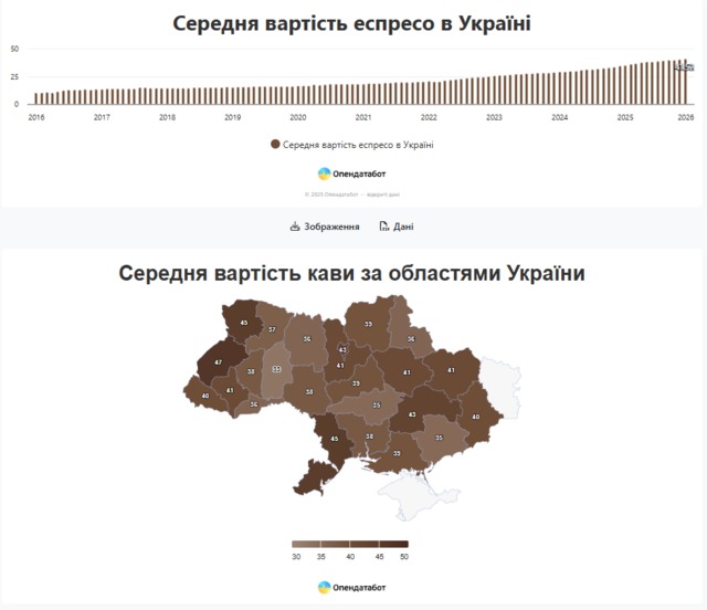Самое дорогое эспрессо сейчас покупают во Львовской области — 47 грн за чашку (+19% за год). Как отмечается, регион впервые за несколько лет стал лидером по цене.
