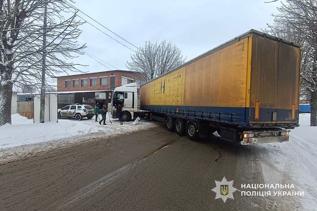 У Дніпровському районі через ожеледицю вантажний автомобіль з’їхав з проїзної частини на узбіччя та не зміг самостійно продовжити рух.