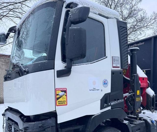 В конце года в рамках проекта помощи от Японии Днепрводоканалу поступила еще одна единица специальной техники – седельный тягач с бортовой платформой длиной 12 метров и манипулятором (RENAULT TRUCKS S.A.S).