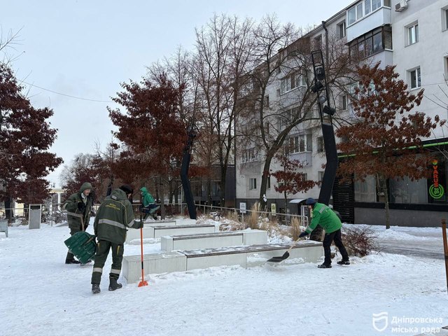 «В конце года декабрь порадовал нас настоящей зимней погодой. Такое количество снега на новогодние праздники жители Днепра, пожалуй, и не вспомнят. Наши работники ежедневно убирают парки и скверы, чистят прежде всего от снега лестницы, центральные аллеи, лавочки, детские и спортивные площадки. Чтобы не было скользко, посыпаем песчаной смесью, без соли, ведь соль портит зеленые насаждения. При необходимости для уборки используем спецтехнику — тракторы и снегоуборочные машины», — говорит заместитель директора КП «Городская инфраструктура» Любовь Чадина.