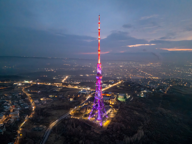 Наши земляки установили систему эффектной подсветки на одном из символов Еревана – телевизионной вышке этого города.
