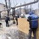 С ночи возле поврежденных домов работают коммунальщики и благотворительные организации. Они предоставляют пленку и OSB-плиты для закрытия отверстий.
