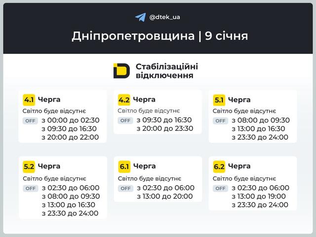 9 января во всех регионах Украины будут применяться графики почасовых отключений и графики ограничения мощности (для промышленных потребителей).