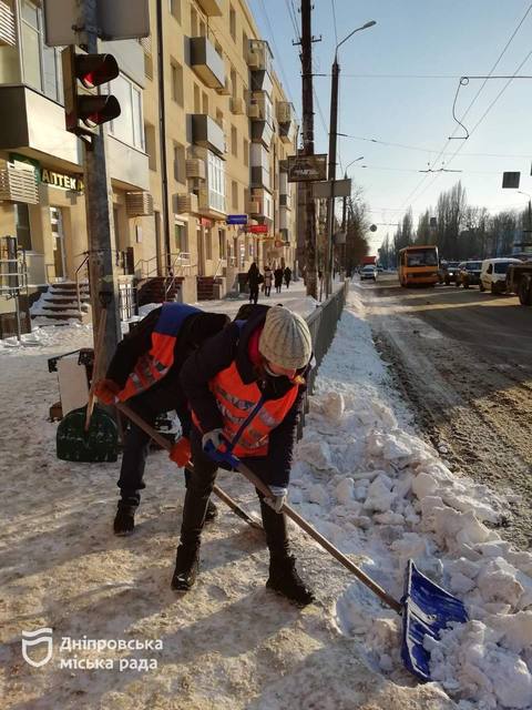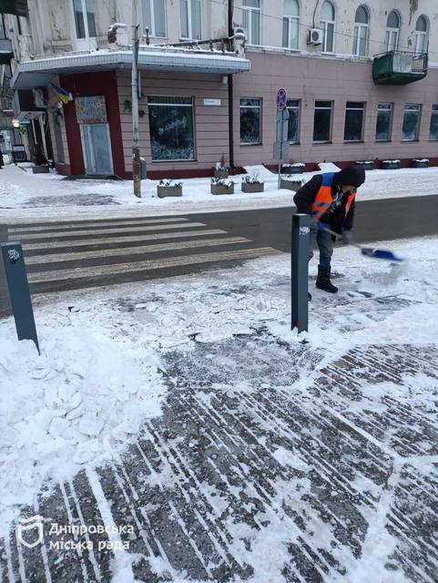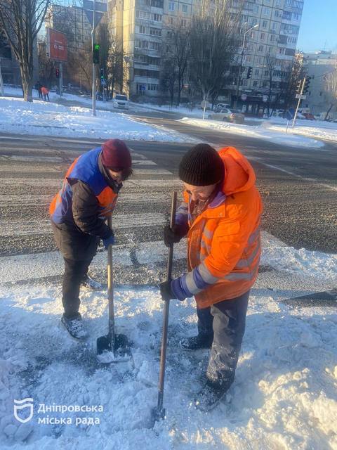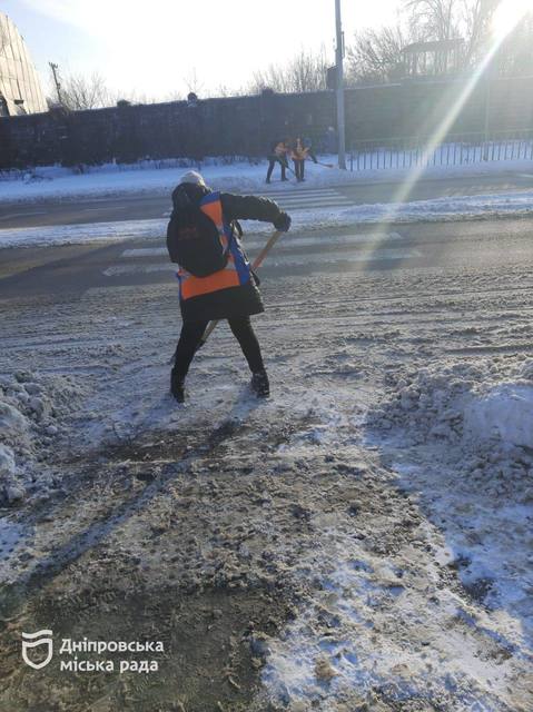 У Дніпрі за останню добу (12–13 січня) комунальні служби міста продовжували прибирати сніг та обробляти дорожнє покриття протиожеледними матеріалами.