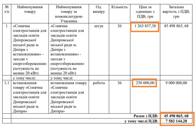 «7 січня ДЕПАРТАМЕНТ ГУМАНІТАРНОЇ ПОЛІТИКИ ДНІПРОВСЬКОЇ МІСЬКОЇ РАДИ провів закупівлю на сонячні електростанції для закладів освіти Дніпровської міської ради м. Дніпра з встановленням.Очікувана вартість закупівлі склала 108 744 168,52 гривні.