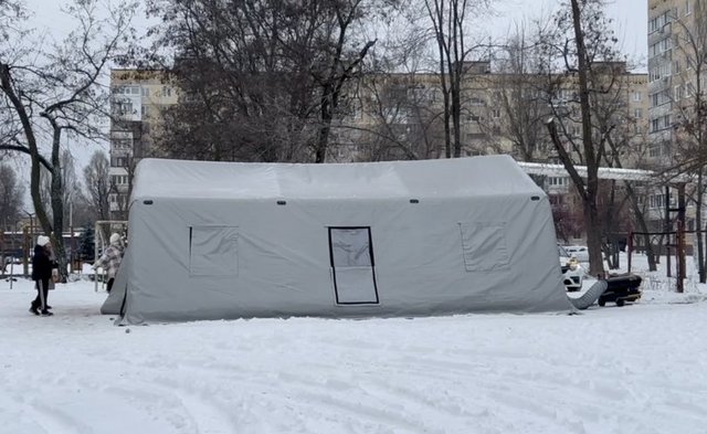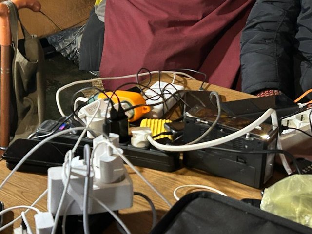 Наталья говорит, чтобы зарядить телефон пришла в "пункт несокрушимости", но стоять долго там холодно. Мобильный генератор привозили, но пока не подключили, рассказывает женщина.