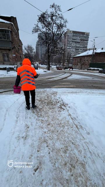 В Днепре коммунальные службы работают в усиленном режиме и непрерывно очищают дороги и тротуары, а также обрабатывают покрытие противогололедными материалами.