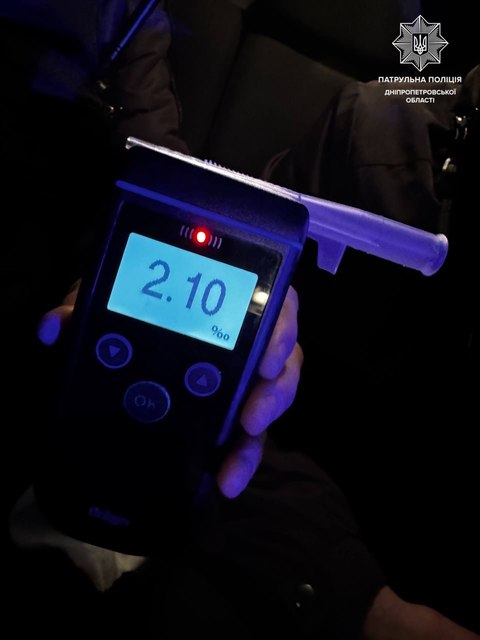 Одного з порушників патрульні виявили на вулиці Панікахи. Водій автомобіля Audi в'їхав у металеву огорожу. Він не постраждав. Поліцейські помітили у кермувальника ознаки алкогольного сп'яніння. Чоловік пройшов освідування за допомогою Драгера. Результат був позитивний — 2,10 проміле алкоголю в його крові. На водія склали два протоколи за ч.1 ст.130 та ст.124 КУпАП.