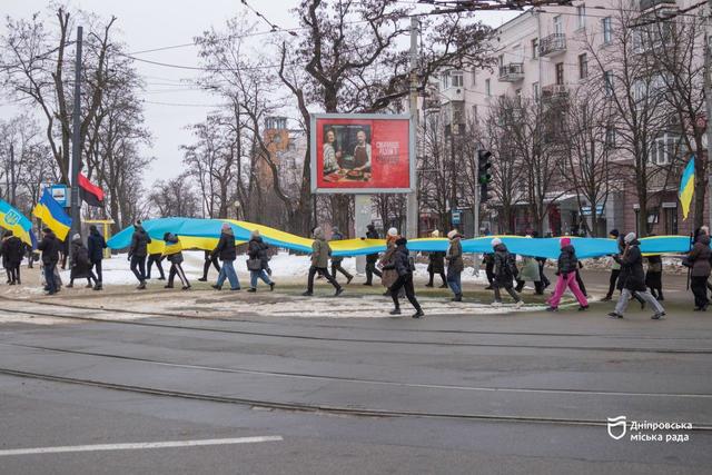 У Дніпрі у День Соборності України пройшла символічна хода з великим Державним Прапором