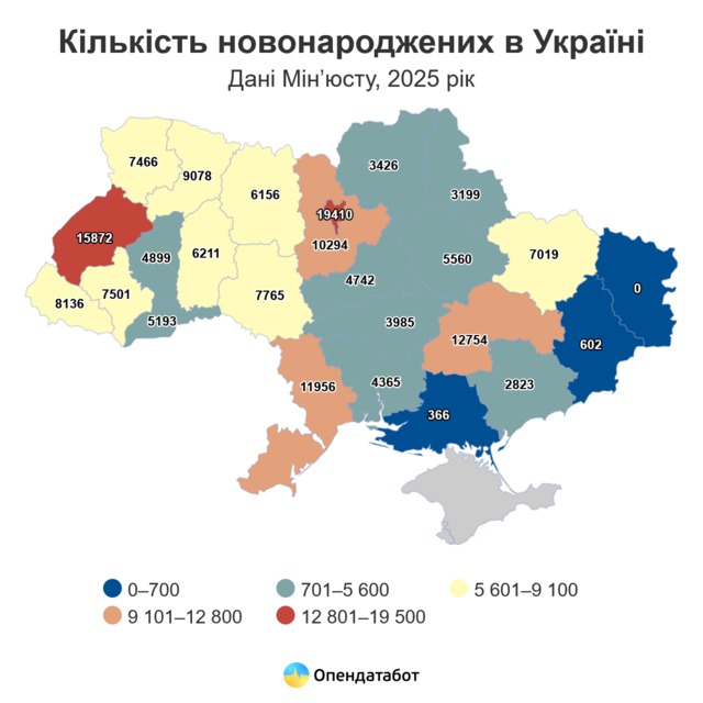 Впрочем, есть и регионы, которые пошли в плюс по количеству новорожденных. Так, во Львовской области рождаемость увеличилась на 1,5% - это на 230 младенцев больше, чем в 2024 году. В Волынской области прирост составил 0,6% или 44 ребенка.