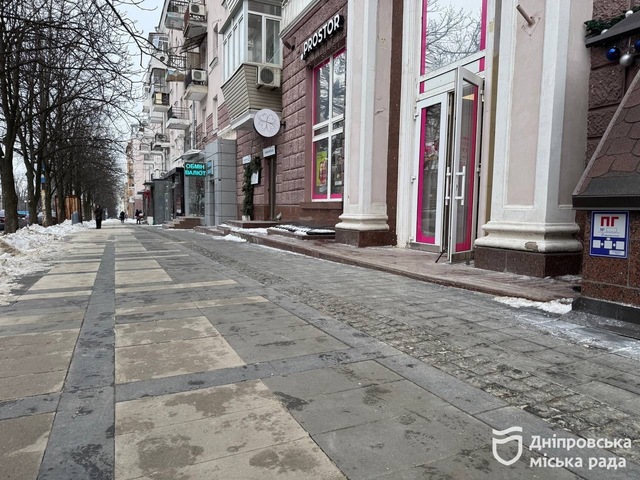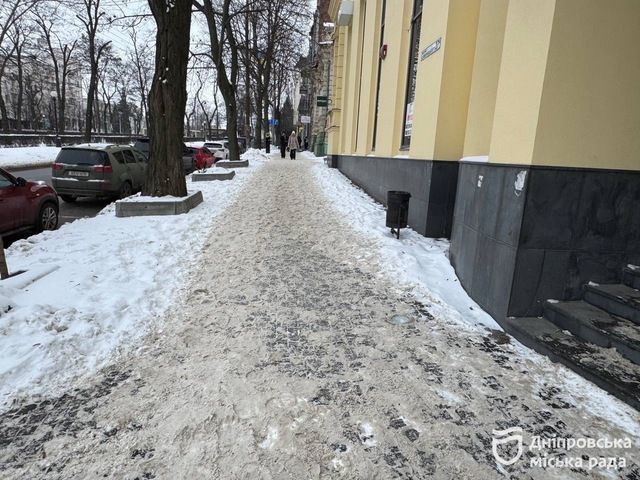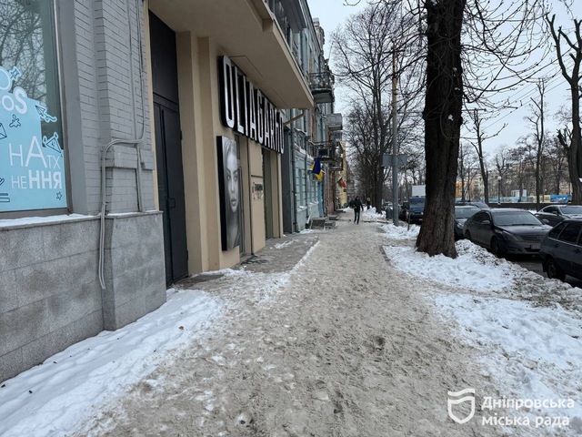 Під час чергування вона також оглянула локацію на проспекті Дмитра Яворницького, 20. Там порушень не виявили. Тротуари та пішохідні зони були очищені від снігу, посипані.