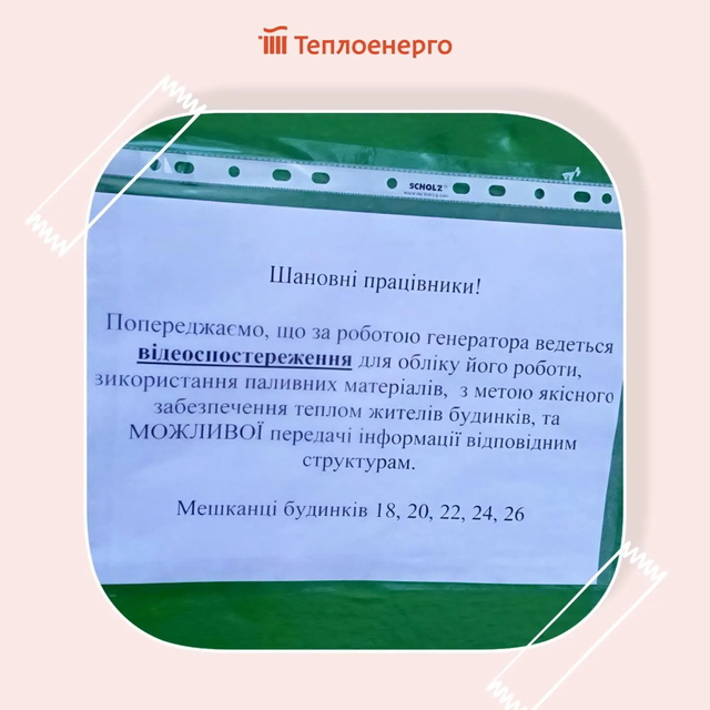 У розпал опалювального сезону встановлений на об’єкті генератор обкидали яйцями, а також розмістили оголошення про нібито відеоспостереження за обладнанням.