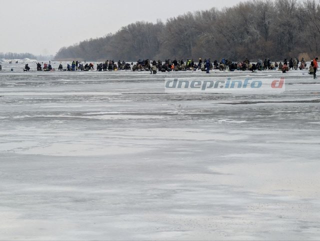В Днепре в +4 сотни рыбаков одновременно вышли на лед посреди реки