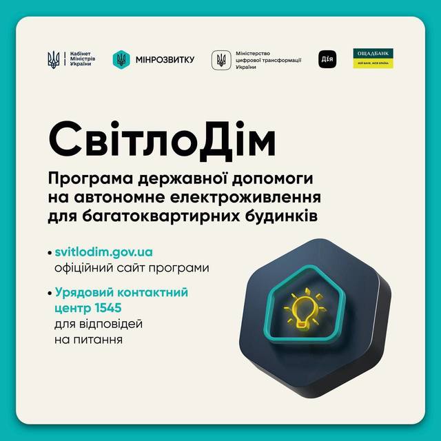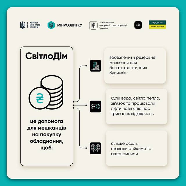 Правительство запускает «СвітлоДім» – программу поддержки многоквартирных домов для установки автономного электропитания во время длительных отключений.