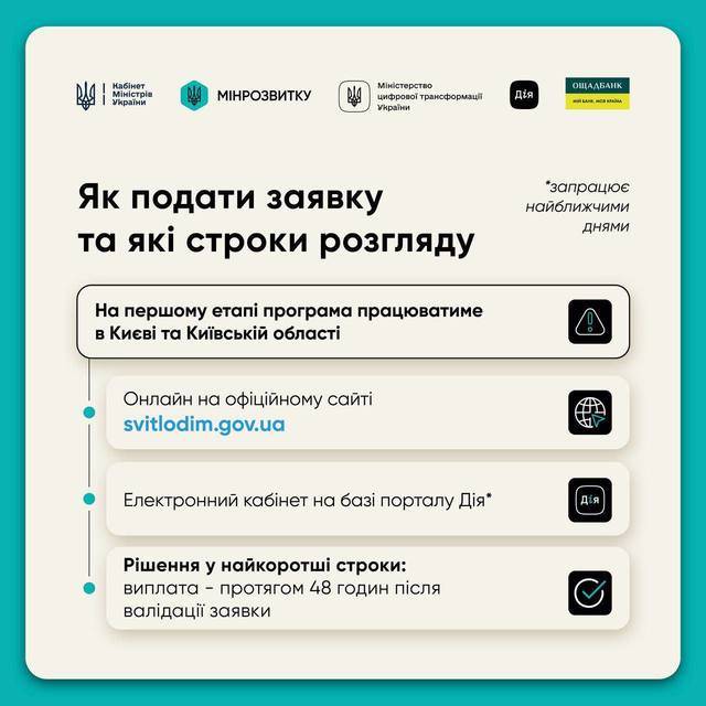 Программа будет действовать в громадах с чрезвычайной ситуацией в энергетике, начиная с Киева и области. О старте подачи заявок на получение помощи в рамках программы дополнительно уведомит Минразвития.
