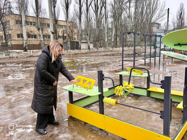 На площадке установили новое игровое оборудование, скамейки-качели, стол для игры в настольный теннис. Проведенные работы 30 января во время дежурства по городу проверила заместитель директора департамента парков и рекреации Днепровского городского совета Ксения Козлова.