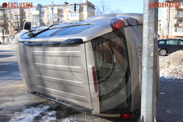 В Днепре на Поля Toyota перевернулась после столкновения с Volkswagen