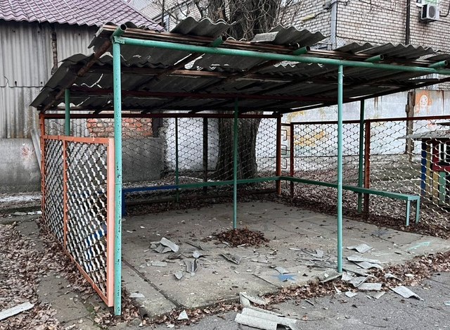 Повреждены 2 частных дома, пятиэтажка, коммунальное предприятие, детсад, авто. Уничтожен гараж.