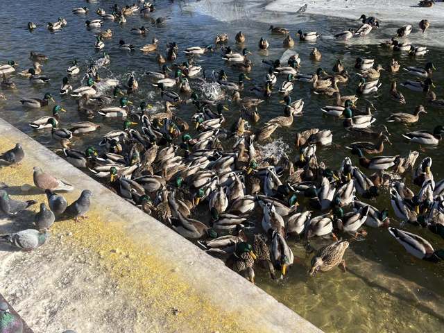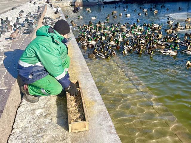 У ці морозні дні працівники парку Глоби дбають про водоплаваючих птахів та підгодовують їх, задля збереження їхньої популяції.