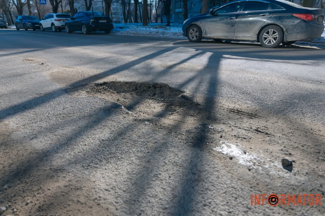 На багатьох вулицях Дніпра дороги знаходяться не в найкращому стані. На жаль, зі снігом пішов і асфальт. Водіям доводиться об’їжджати чисельні ями.