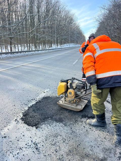 Попри мінусові температури та складні погодні умови дорожники проводять роботи з ліквідації аварійної ямковості на дорожньому покритті. Виконання таких робіт необхідне для забезпечення безперебійного руху та запобігання подальшого руйнування покриття.
