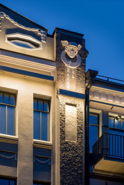Ця будівля — одна з ключових пам’яток харківського модерну початку ХХ століття. Вона формує характер середовища і працює як частина цілісного образу центру міста. Наше завдання полягало в тому, щоб світло делікатно підкреслило архітектуру, не втручаючись у її логіку та пропорції.