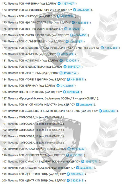 Серед них — понад 20 компаній, які, за версією слідства, можуть входити до єдиного ланцюга.