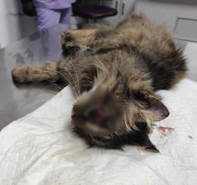 У під’їзді багатоповерхівки мешканці знайшли напівмертвого котика з розтрощеною головою, розбитим оком та іншими важкими травмами.