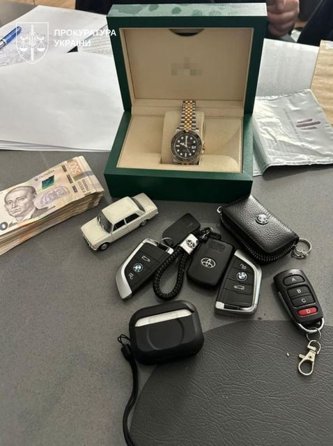 В ходе обысков у майора изъято 51 тысяча долларов США, 2,1 тысяча евро, 201 тысяча гривен, автомобили, документы на элитную недвижимость, коллекцию брендовых вещей стоимостью более 8 млн грн и долговые расписки на 120 тыс. долларов. У заместительницы изъяты долговые расписки на 20 тысяч долларов, мобильные телефоны, ноутбуки, банковские карты и документы.