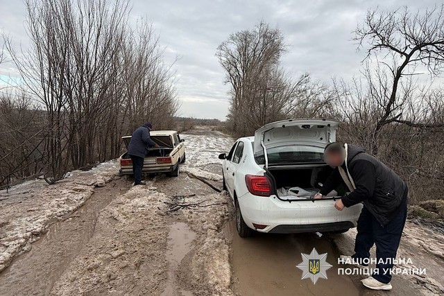 Во время несения службы полицейский офицер Новопольской территориальной громады обнаружил на дороге два транспортных средства, которые из-за замерзших ям не могли продолжить движение.