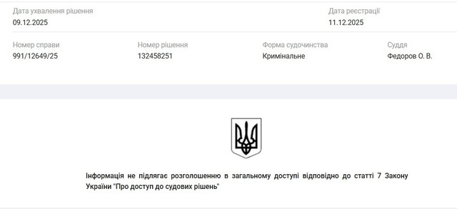 Між тим, аналітична платформа YouControl опублікувала це рішення – але суддя Федоров Олег Володимирович зробив його засекреченим. Підстава: статті 7 Закону України «Про доступ до судових рішень». У якій йдеться про нерозголошення номерів авто, ПІБ т.ін., але не про засекречення всього тексту судового документа».
