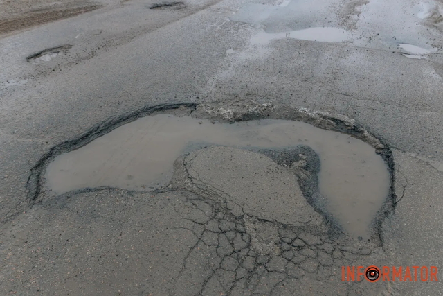 У Дніпрі з настанням відлиги почав танути сніг, і разом із ним – асфальт. На багатьох вулицях міста дорожнє покриття стрімко руйнується, утворюючи небезпечні ями.