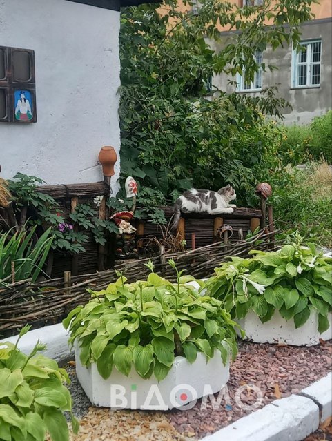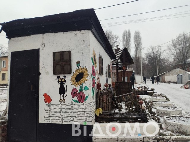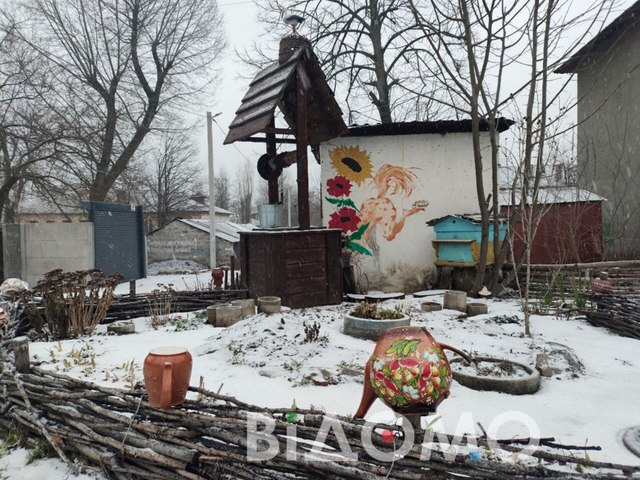 Його Олександр фарбував власноруч і встановив як частину композиції. Іноді туди навіть навідуються бджоли. Влітку подвір’я тоне в зелені та квітах, а взимку виглядає не менш чарівно.
