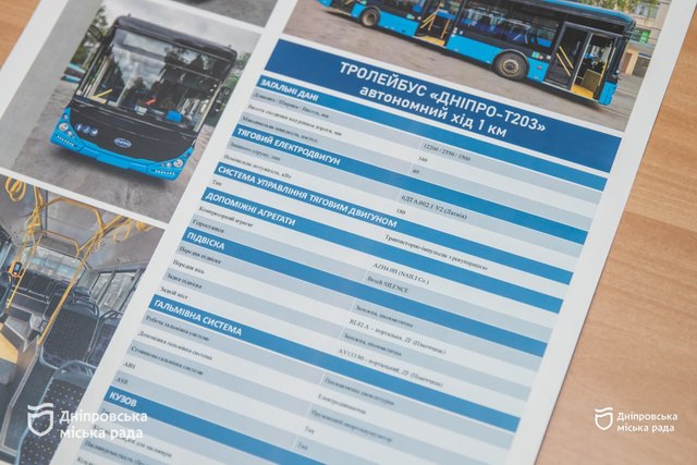 Директор КП «Дніпровський електротранспорт» Володимир Кобець зазначив, що місто отримає тролейбуси моделі «Дніпро» Т203, які вже добре зарекомендували себе в експлуатації.