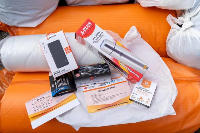 У пакунках – спальні мішки, термоковдри, павербанки, термоси, ліхтарики, переносні плити з пальниками тощо.