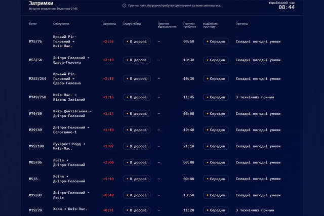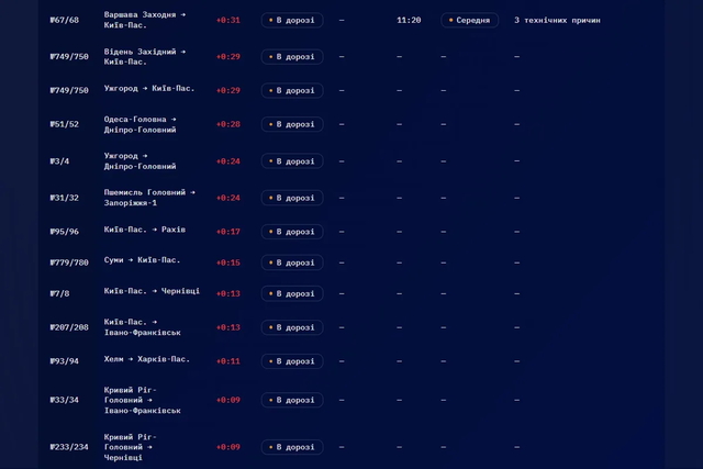 №79/80 Днепр – Львов (+40 минут).