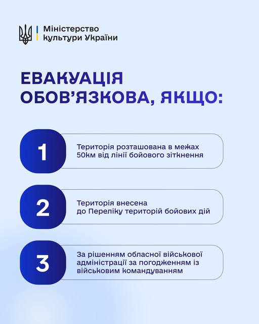 «50 км від лінії фронту — тепер чітка зона обов’язкової евакуації музейних предметів. Це довгоочікуване рішення для захисту культурної спадщини в умовах повномасштабної війни.