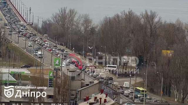 Утром среды, 4 марта, на Центральном мосту в Днепре в сторону правого берега значительно осложнилось движение транспорта.