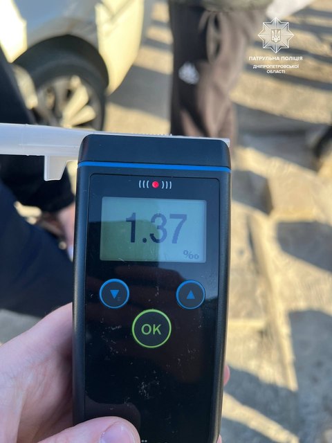 Під час спілкування з водійкою поліцейські помітили в неї ознаки алкогольного сп’яніння. Жінка погодилася пройти медогляд за допомогою приладу “Драгер“. Результат — 1.37 проміле алкоголю в крові.