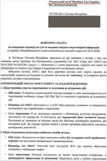 Я направляю скаргу в Генеральний штаб, а вони її перенаправляють у військову частину, яка не є розпорядником інформації?!