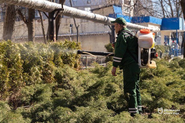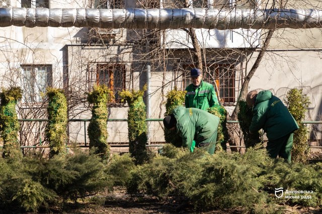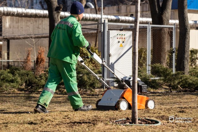 Это необходимо для удаления сухой травы и остатков растений, улучшения доступа воздуха к почве и стимулирования активного роста газона в весенний период. Для этого мы специально приобрели новую уникальную технику – аэратор-скарификатор. Затем, после открытия системы полива, для улучшения газона будут внесены удобрения, а именно аммиачная селитра. Также сейчас производим поднятие кроны деревьев, чтобы избежать падения веток на пешеходные зоны и увеличить попадание света на дорожки. Особое внимание мы уделяем хвойным растениям. После зимы работники развязывают туи, которые на холодный период были связаны для защиты от снега, а также производят их формовочную стрижку для сохранения декоративного вида. Кроме того, для поддержания здорового состояния хвойных растений их обрабатывают баковыми смесями», — рассказала начальник службы благоустройства и содержание зеленых зон КП «Городская инфраструктура» Днепровского городского совета Евгения Шевелько.