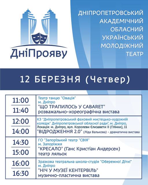 Молодежный театр Днепра приглашает всех желающих на показ ярких спектаклей: