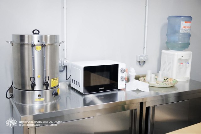 В укрытии – более 10 кабинетов, актовый зал и буфет. Современная мебель, есть вся необходимая техника. Во время отключения света работает генератор.