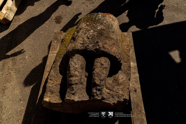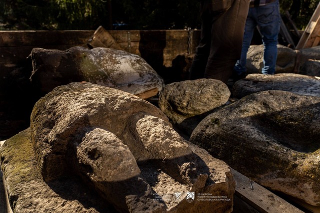Кам’яні баби, які евакуювали з Синельниківського району Дніпропетровщини. Служба супроводу 25 окремої повітрянодесантної Січеславської бригади/Facebook